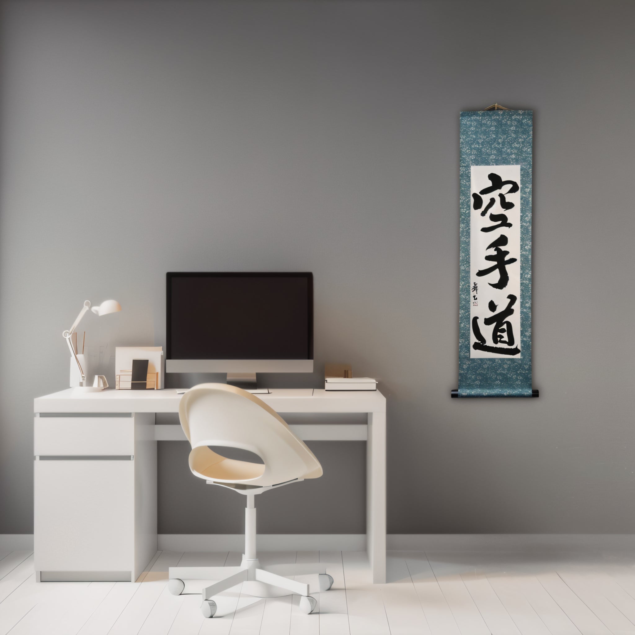 This calligraphy scroll features the powerful phrase 空手道 (Karate-do) — not merely a martial art, but a lifelong journey of discipline, respect, and inner strength.