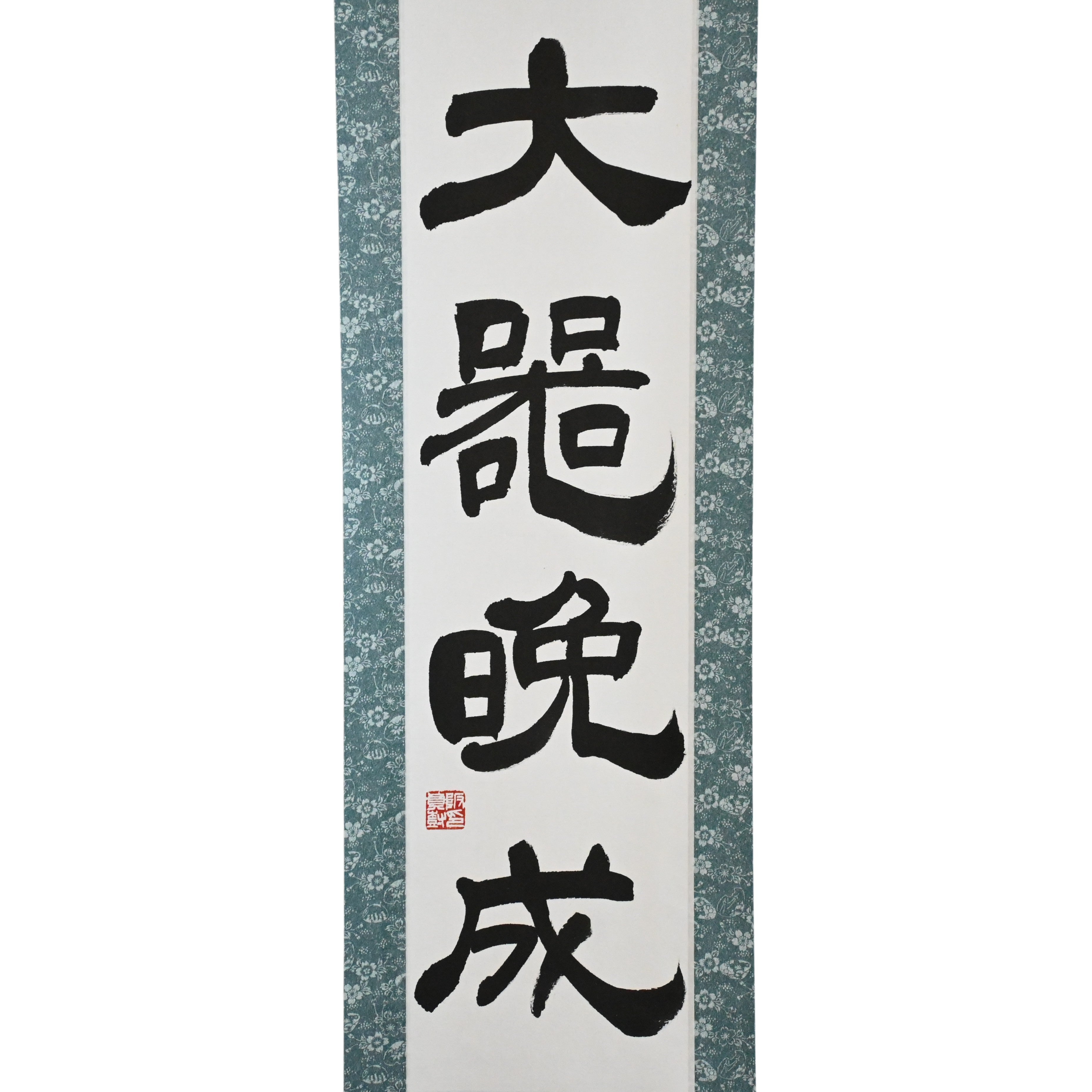 This Japanese calligraphy scroll features the timeless phrase 大器晩成 (Taiki Bansei) — a classical expression rooted in ancient Asian philosophy. Literally meaning “a great vessel is slow to form”, it teaches that true greatness does not appear quickly. The most profound talent, strength, and character are shaped slowly, through years of experience, discipline, and inner growth.